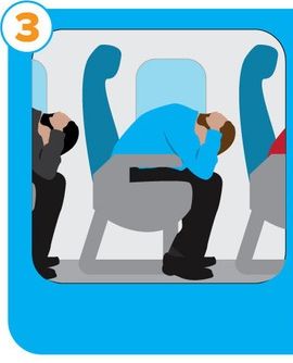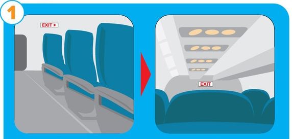 1. Во время демонстрации спасательного оборудования сосчитайте и запомните количество рядов до ближайшего выхода. Затем — до другого ближайшего выхода, помня о том, что он может быть позади вас.