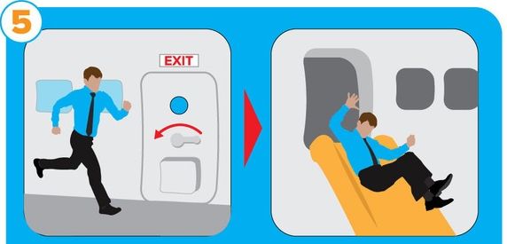 5. Когда объявлена эвакуация, на счету каждая секунда. Вы должны быстро добраться до ближайшего выхода и скатиться по спасательному трапу. Если будете мешкать, бортпроводники вас вытолкнут.