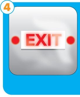 4. Ориентируйтесь на красное свечение — именно этим цветом обозначены выходы, потому что он лучше всего пробивается сквозь дым.