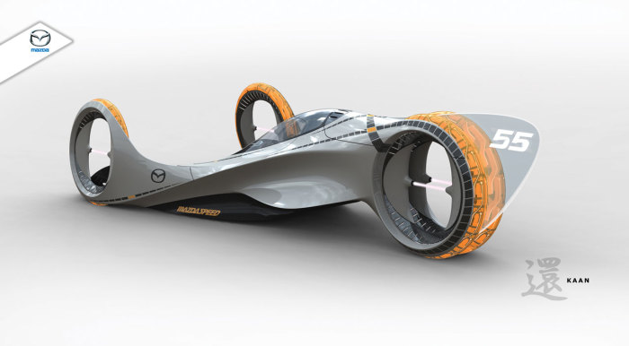 Футуристический концептуальный автомобиль Mazda Kaan один из возможных путей эволюции гоночных машин. Работая на электродвигателе, эта машина в мгновенье ока будет разгоняться до 400 км\ч и более.