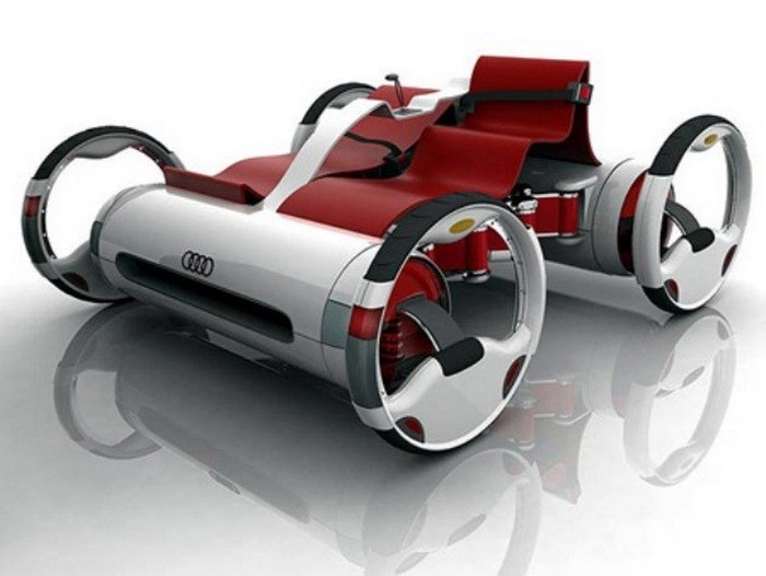 Проект Алексея Быкова - Audi Quatroflex выглядит более, чем необычно. Машина предназначена для поездок по городу и отличается тем, что ее «салон» полностью открыт. Управление электрокаром осуществляется при помощи джойстика.