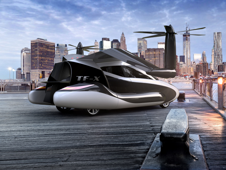 Аэромобиль TF-X будет иметь одно кресло для пилота и три пассажирских. Он будет оснащен системой вертикального взлета и посадки, состоящей из двух винтов, раскладывающихся и складывающихся внутрь специальных гондол.
