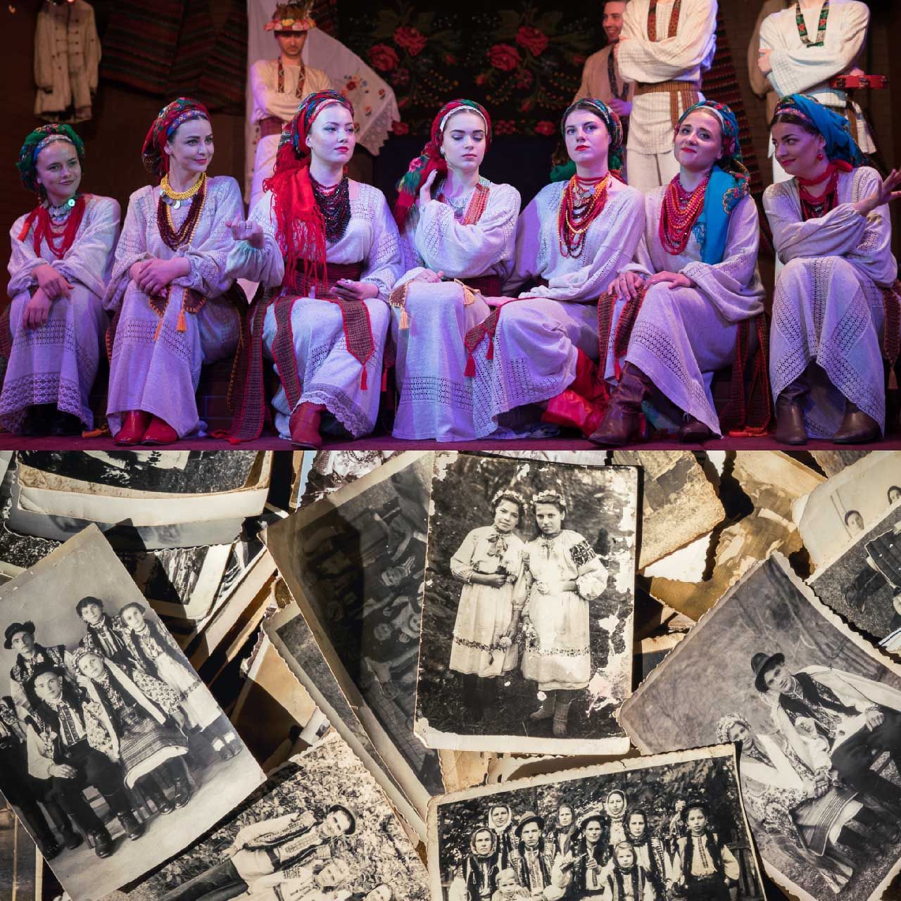 На верхней фотографии — буковинский танец и музыкальное выступление в Черновцах. На нижней фотографии — старые фотографии, найденные в доме из деревни Бабин в Карпатах.