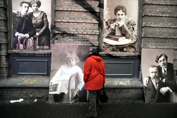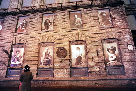 Огромные старые фотографии высотой в человеческий рост уже украсили здание бывшей гостиницы «Красная звезда» на улице Ярославов вал, 15. Фотографии, заполнившие окна дома, сделаны украинскими фотографами в 1900–1920- х годах. Несколько работ сделаны известным фотографом Алексеем Иваницким, а на одном портрете — он сам с внучкой.