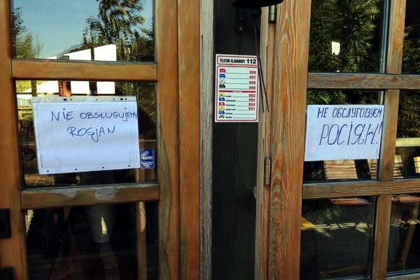 Как сообщают местные СМИ, на дверях заведения «Piaskownica» (Песочница) висит объявление, написанное от руки «Rosjan nie obsługujemy» («Россиян не обслуживаем»).