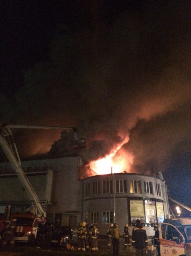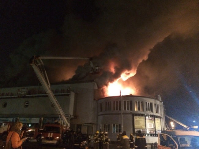 Поздно вечером в среду, 29 октября, в Киеве загорелось здание кинотеатра «Жовтень».