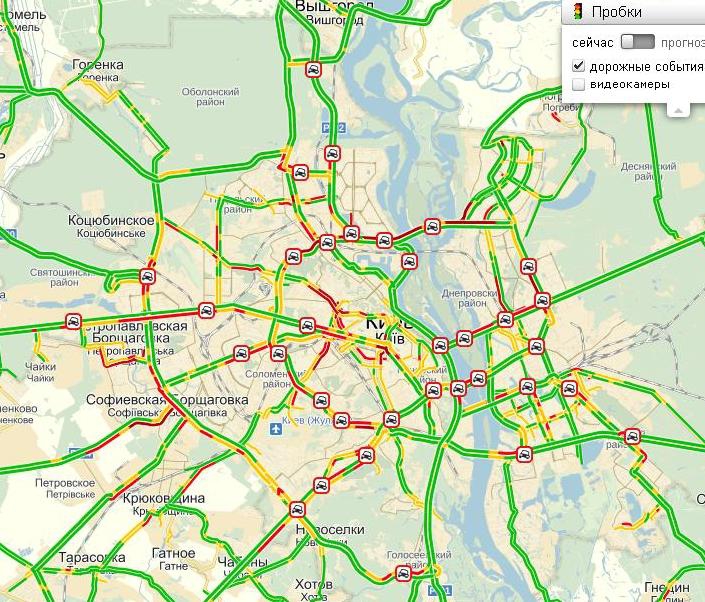 Наиболее сложная ситуация в центре Киева: в пробках стоят проспект и площадь Победы, бульвары Тараса Шевченко и Леси Украинки, Вокзальная площадь и Краснозвездный проспект.