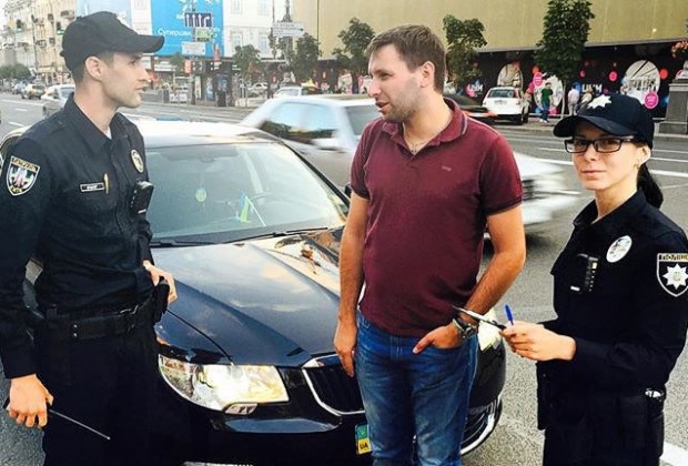 Парасюк на автомобиле Skoda Superb проехал на Крещатике на красный свет, патрульный автомобиль полиции догнал его и вынудил остановиться.