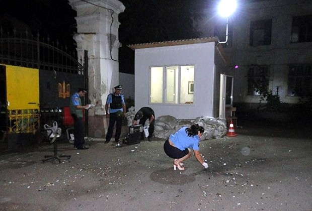 «...Неизвестные лица бросили на территорию общественной организации взрывной пакет...В результате взрыва выбито окно караульного помещения и частично повреждены ворота, которые выходят а улицу Канатную. Пострадавших нет, находящееся во дворе здание бывшего военкомата, являющееся памятником архитектуры, не пострадало» — говорится в сообщении.