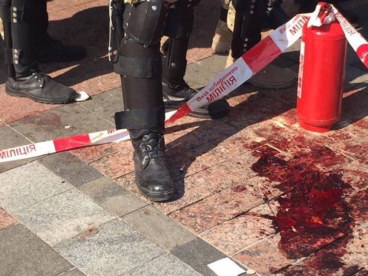 По словам Авакова, это результат брошенных взрывных устройств людьми в футболках партии «Свобода», которые устроили драку с Нацгвардией под Верховной Радой.