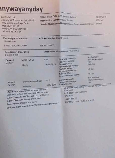 Из Беларуси он планировал бежать в Россию. У Шевцова изъят авиабилет «Минск - Москва».