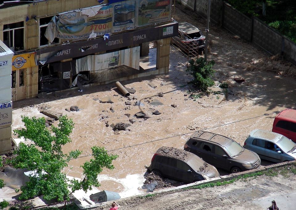 В понедельник, 29 мая, на Голосеевском проспекте в Киеве во время испытаний водопроводных сетей давлением прорвало трубу диаметром 800 мм.