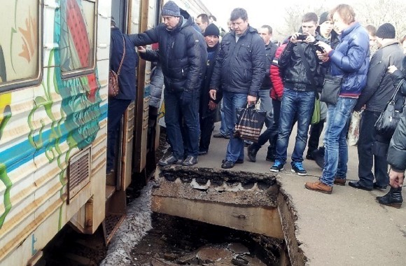 В 8:45 на перроне станции городской электрички «Вышгородская» обвалилась часть платформы . Около десятка людей, уже собиравшиеся садиться в подъехавший поезд в сторону станции «Сырец», неожиданно рухнули вниз. К счастью, обошлось без жертв, пассажиры отделались сильным испугом.