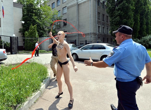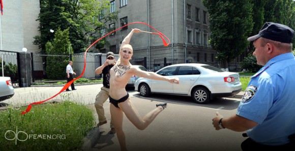 FEMEN: «Алина Кабаева» исполнила брачный танец у посольства России в Киеве