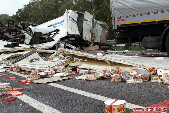 В Житомирской области столкнулись 4 фуры: Дорога усыпана тортами, два водителя в больнице