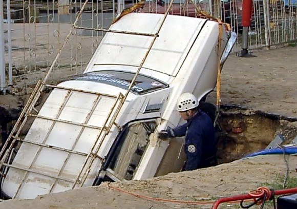 4 ноября, в Киеве в результате прорыва трубы с холодным водоснабжением на территории автостоянки на Лесном массиве на Волгоградской площади, недалеко от рынка «Юность» под асфальт провалились 3 автомобиля.