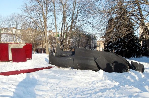 Как сообщили в пресс-службе Киевского облуправления МВД Украины, информация о происшествии поступила в милицию в 6.30 утра. Прибывшая на место происшествия следственно-оперативная группа установила, что неизвестные с помощью троса и лебедки стянули с постамента 7-тонный памятник высотой 6 метров.