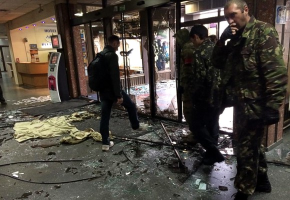 «Активисты крушат окна и двери отеля. В одном из коридоров горит огонь. Вестибюль наполнен едким газом, у всех на глазах слезы, в том числе у милиционеров», — сообщил он.