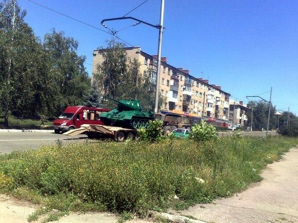 Во вторник, 1 июля, в городе Дружковка Донецкой области средь бела дня с постамента в сквере «Юбилейный» на улице Ленина сняли танк Т-34 и установили на блокпосту на выезде из города.