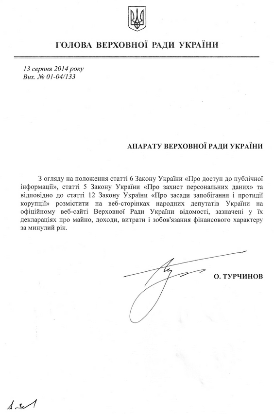 Как сообщается на сайте Верховной Рады, Турчинов неоднократно обращался к народным депутатам с «поручением самостоятельно обнародовать их декларации».