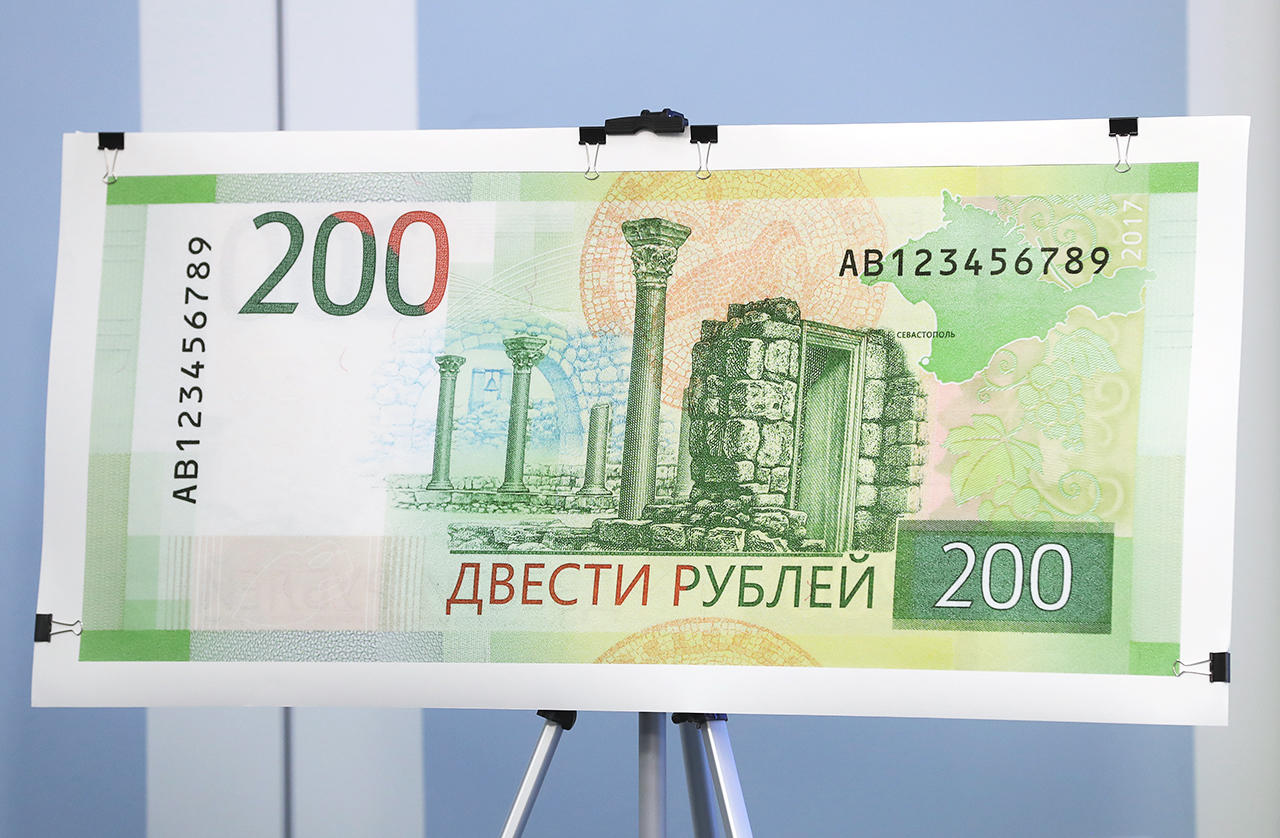 В частности, на зеленой купюре номиналом 200 рублей изображены символы Севастополя: на лицевой стороне — Памятник затопленным кораблям, на оборотной — вид на Херсонес Таврический.