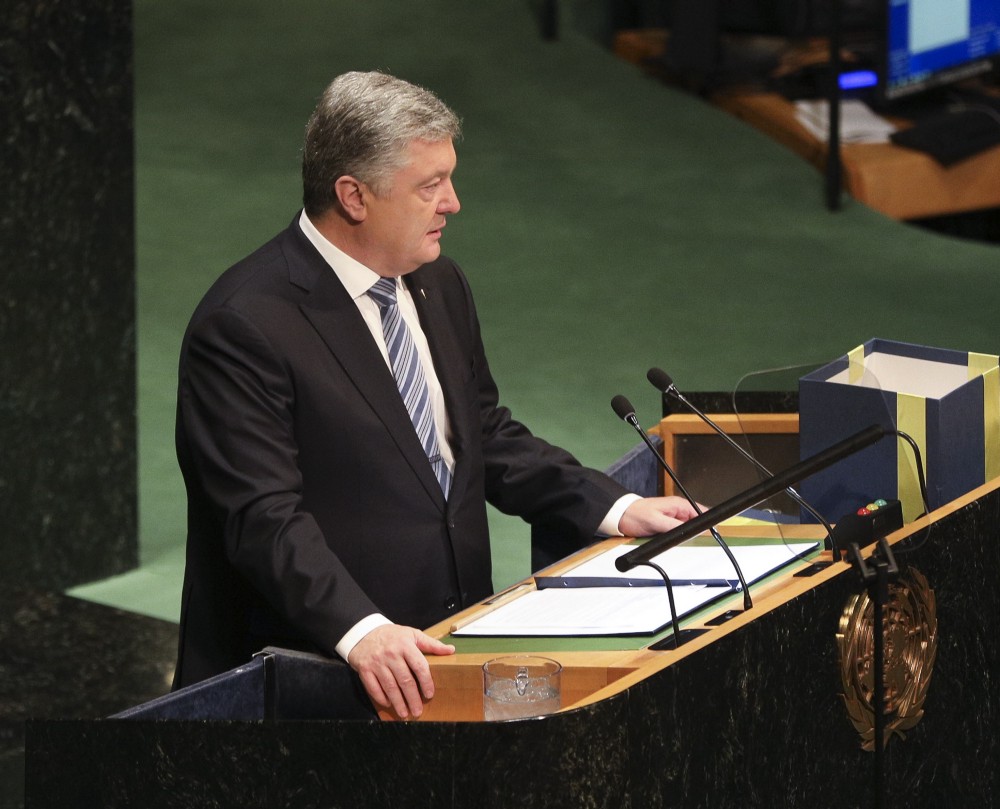 В пятую годовщину российского вторжения в Украину президент Петр Порошенко на форуме Генеральной Ассамблеи назвал это нарушением международного права и Устава Организации Объединенных Наций. Он напомнил о страданиях украинцев, живущих в условиях конфликта, который длится дольше всего в истории современной Европы. Аргументы России, что кризис является внутренним делом Украины, президент назвал бессовестными, а «референдум» на Донбассе – сюрреалистическим и таким, что нет ничего общего с демократией.