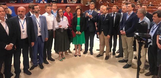 Совместныем заявлением, которое было зачитано после голосования в ПАСЕ за утверждение полномочий делегации РФ без введения каких-либо санкций, опубликовала в Facebook народный депутат, член украинской делегации Елена Сотник.