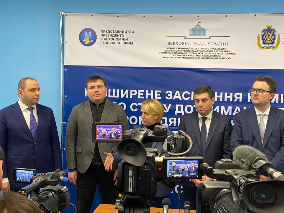В своем посте он рассказал, что накануне на КПВВ «Чонгар»(Херсонская область) состоялось выездное заседание, в котором приняли участие постоянный представитель президента Украины в АР Крым Антон Кориневич, омбудсмен Людмила Денисова, министр по делам ветеранов Оксана Коляда, председатель Херсонской ОГА Юрий Гусев и другие.