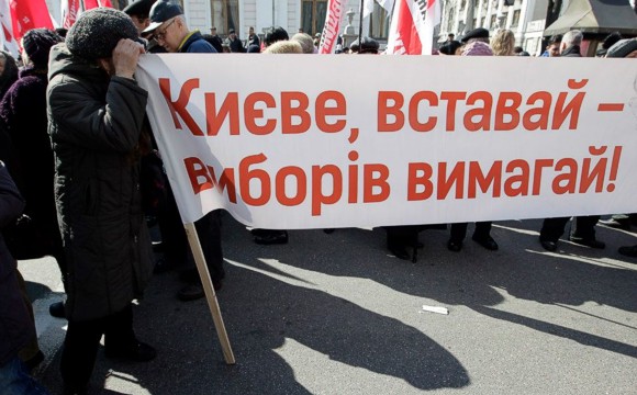 Участники марша несли плакаты с надписями: «Выйди на улицу — верни себе город!», «Попову — позор!», «Попов мэр —Киев умер!».