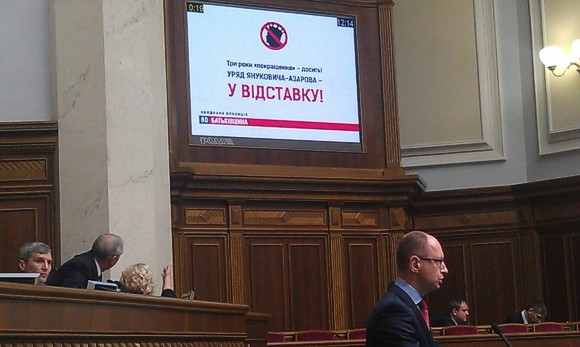 Рассмотрение вопроса об ответственности правительства Николая Азарова в парламенте инициировали депутаты оппозиционных фракций, которые собрали для этого 174 подписи. По их мнению, деятельность Кабмина является нелегитимной, так как в нарушение Конституции на рассмотрение Рады не была внесена программа деятельности правительства.
