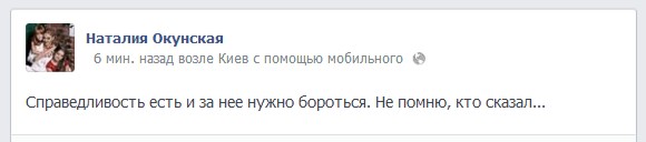Сама Наталия Окунская в на своей странице в фейсбуке написала: «Справедливость есть и за нее нужно бороться. Не помню, кто сказал...»