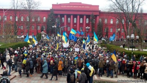 Ранее в Тернополе, Ужгороде, Ивано-Франковске студенты заявили о намерении бастовать из-за распоряжения правительства о приостановке подготовки к подписанию соглашения об ассоциации Украины с Евросоюзом.