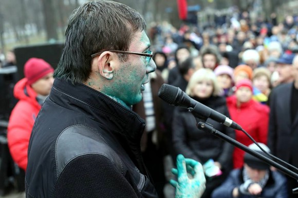 Экс-министра внутренних дел Юрия Луценко, который в субботу, 28 декабря приехал в Харьков, чтобы выступить на местном Евромайдане, облили зелёнкой.
