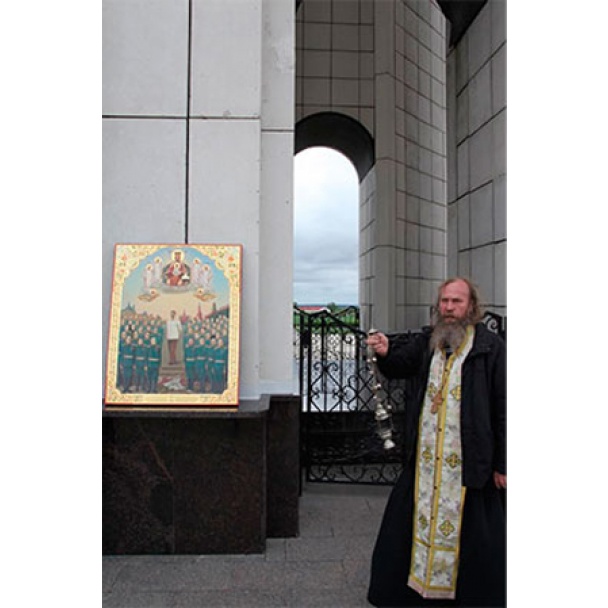 Афонский иеромонах Афиноген отслужил в Белгородской области Российской Федерации литию с иконой, на которой изображен Иосиф Сталин.