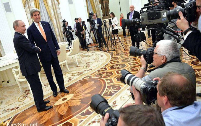 Вечером в четверг, 14 июля, в Кремле состоялась встреча госсекретаря США Джона Керри с российским президентом Владимиром Путиным и министром иностранных дел РФ Сергеем Лавровым.