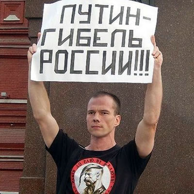 Среди акций Ильдара Дадина — попытка развернуть баннер с критикой политики Владимира Путина на фоне Кремля.
