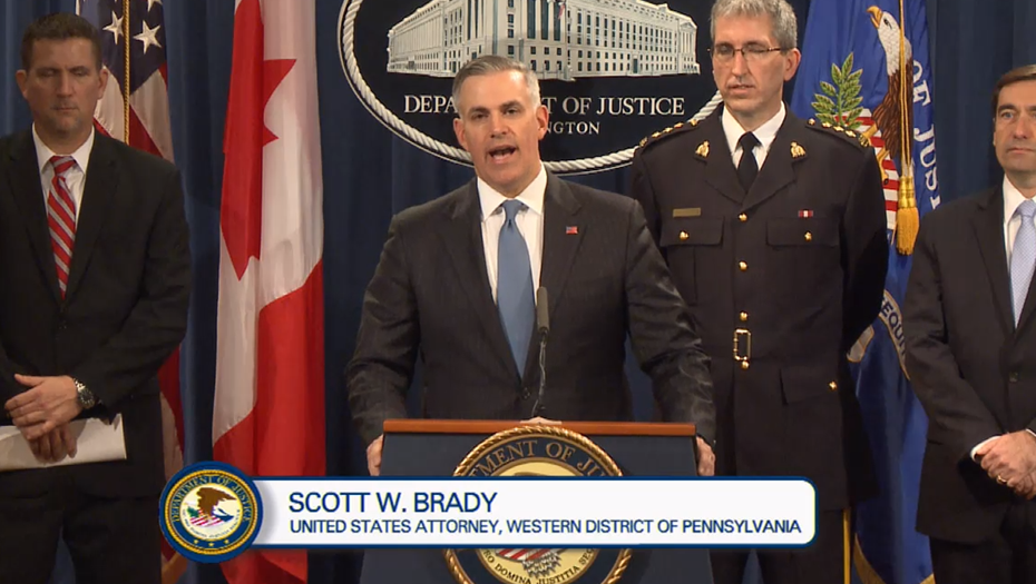 В конференции приняли участие помощник генпрокурора по нацбезопасности США Джон Демерс, заместитель помощника директора ФБР по кибербезопасности Эрик Уэллинг, прокурор Западного округа Пенсильвании Скотт Брэди, директор королевской конной полиции Канады генерал Марк Флинн.