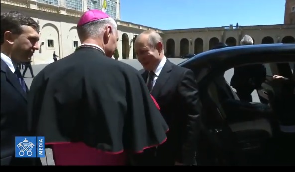 На сайте Ватикана анонсировали встречу на 13:00, но самолет Путина приземлился в аэропорту Фьюмичино в Риме в 12:58, после чего российский президент сразу отправился в Ватикан, где его с часу дня у Апостольского дворца (резиденции Папы) ждали личный секретарь Папы, журналисты и почетная гвардия. Путин прибыл туда в 14:07.