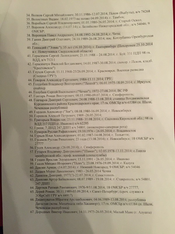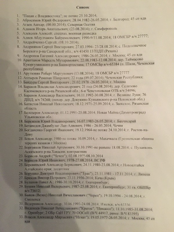 На сайте общественного движения «Открытая Россия», которое было создано Михаилом Ходорковским, обнародован список российских солдат и офицеров, предположительно погибших в Украине в период с мая по ноябрь текущего года.