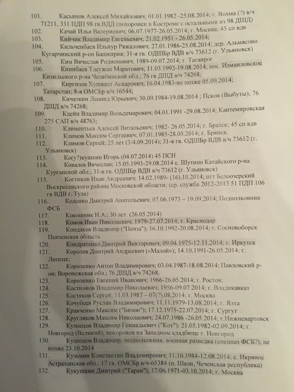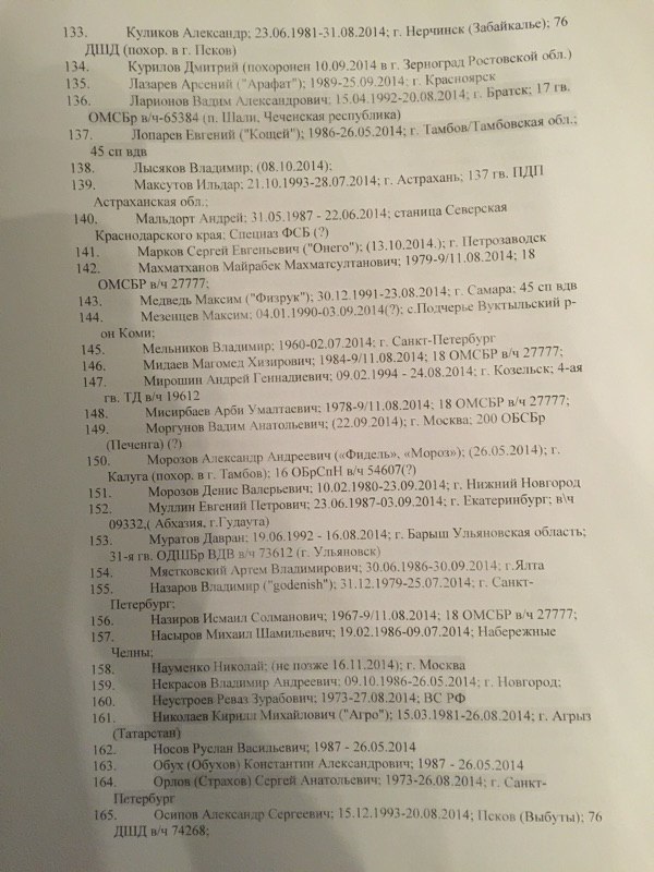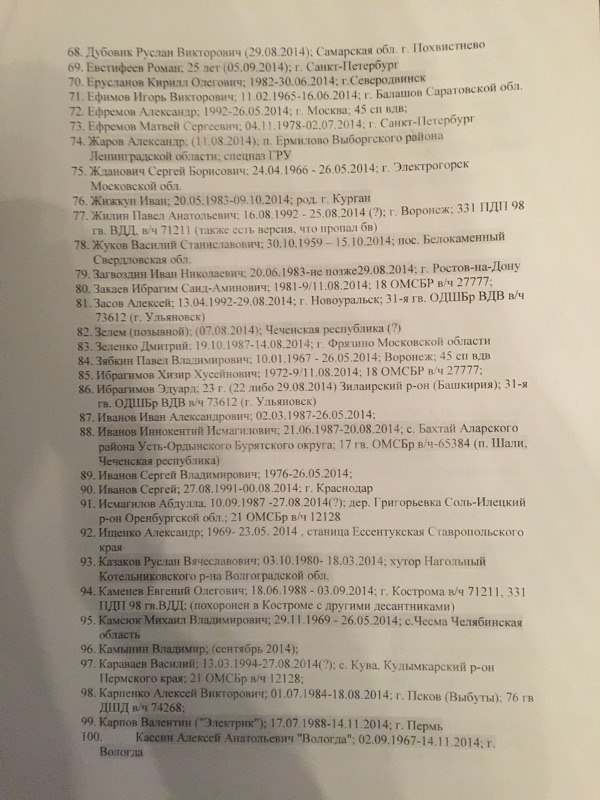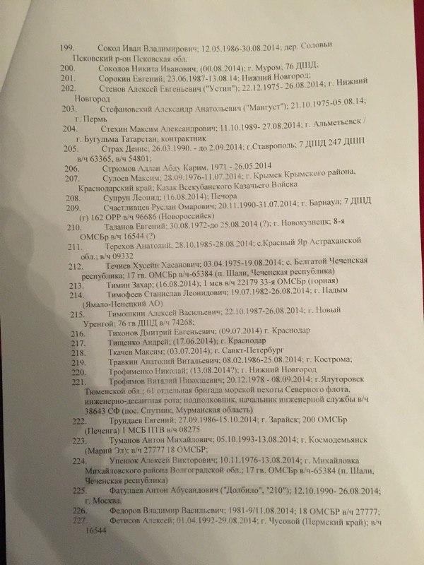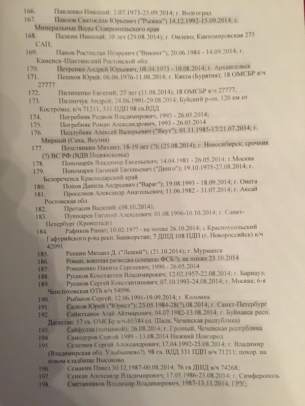 Всего в списке упоминается 227 фамилий граждан Российской Федерации, погибших в боях на территории восточной Украины.