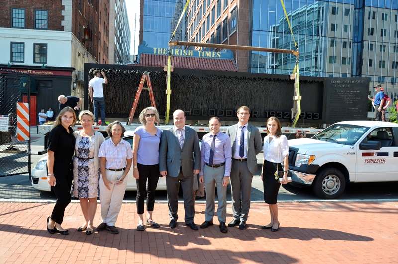 Участие в церемонии установки приняли Посол Украины в США Валерий Чалый, автор проекта памятника «Поле пшеницы» Лариса Курилас, председатель Краевого комитета США для признания Голодомора геноцидом Михаил Савкив, представитель архитекторской компании «Hartman-Cox» Мэри Кэтрин Ланциллотта, а также представители строительной компании-генподрядчика «Forrester» и литейной мастерской «Laran Bronze», которая изготовила бронзовую скульптуру памятника.