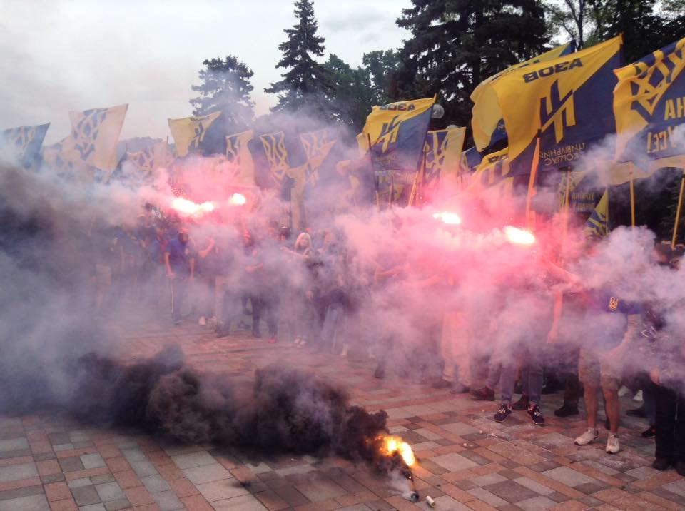 Активисты «Азова» устроили у стен Рады фаер-шоу с громкими лозунгами