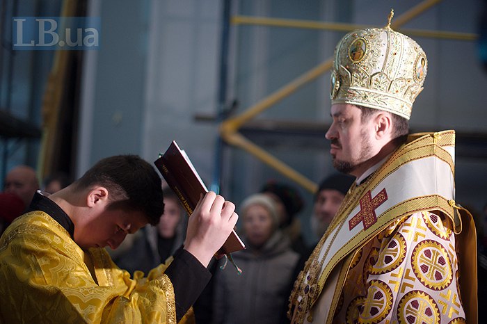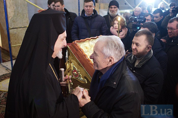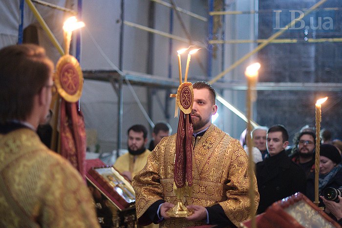На богослужении присутствовало несколько десятков человек, в частности, министр культуры Евгений Нищук и директор департамента по делам религий и национальностей Министерства культуры Андрей Юраш.