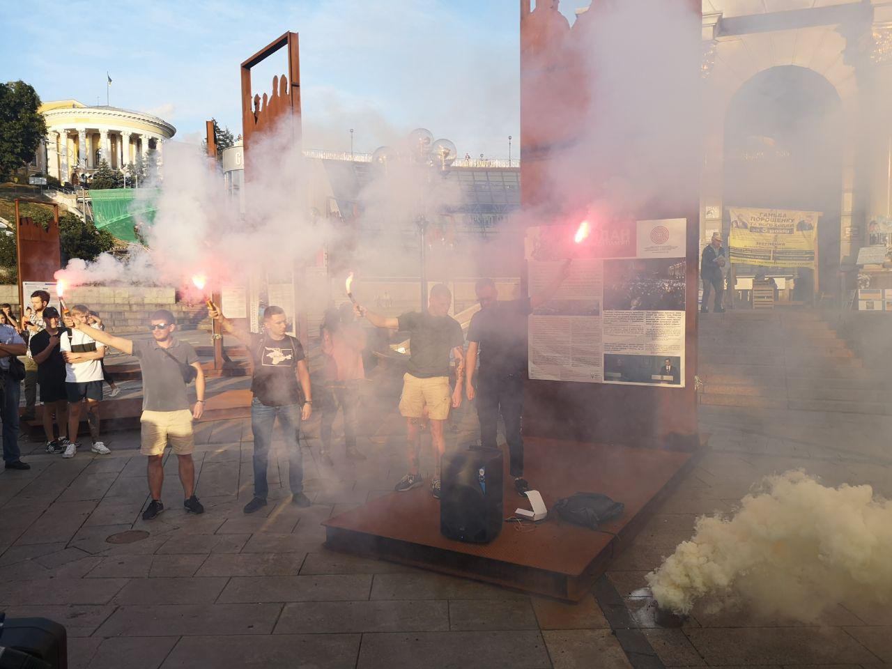 Некоторые люди зажигали дымовые шашки, файеры.