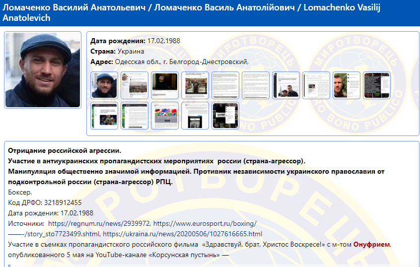 Стоит отметить, что в базу «Миротворца» спортсмены попали после того, как приняли участие в съемках российского фильма «Здравствуй, брат, Христос Воскресе!», опубликованного на YouTube-канале «Корсунская пустынь» 5 мая.