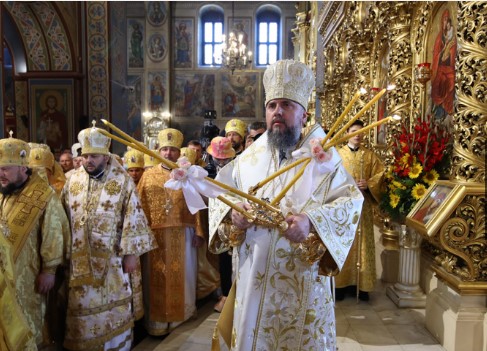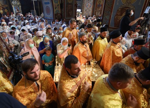 Сегодня в Свято-Михайловском Златоверхом соборе прошла божественная литургия с участием настоятеля Православной церкви Украины митрополита Епифания, а в 11:00 начнется молебен у памятника князю Владимиру.