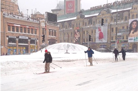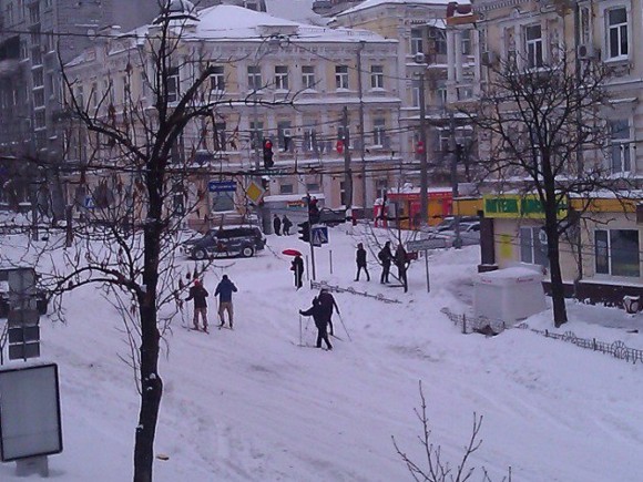 Андреевский спуск превратился горнолыжную трассу: