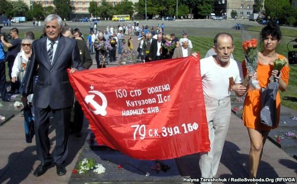 В этом году 9 мая во Львове напоминало охоту за красным флагом. На Марсовом поле представитель Прогрессивной социалистической партии Александр Покровский развернул красный флаг Победы, с которым ветераны и несколько человек спокойно прошли вдоль аллеи. Никто у людей не вырывал знамя, а правоохранители не делали никаких замечаний.
