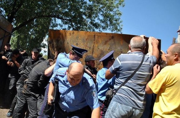 По словам очевидцев, милиция приняла сторону застройщика и расталкивала людей.