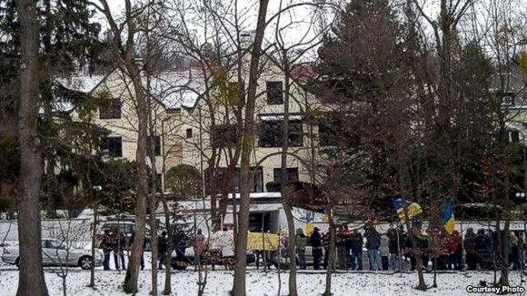 Пикет Автомайдана под особняком, который принадлежит семье Азарова.